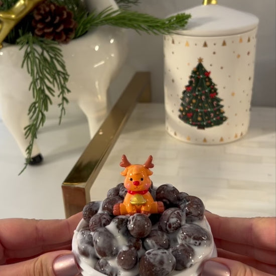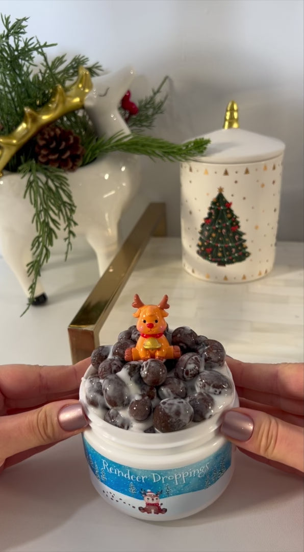 Reindeer Droppings is a new white glue crunchbomb texture, with a theme we thought would be perfect for our first pebble slime! It is about ⅔ packed with clay pebbles, which create satisfying croaky ASMR, incredible crackles, and bubble pops during play.